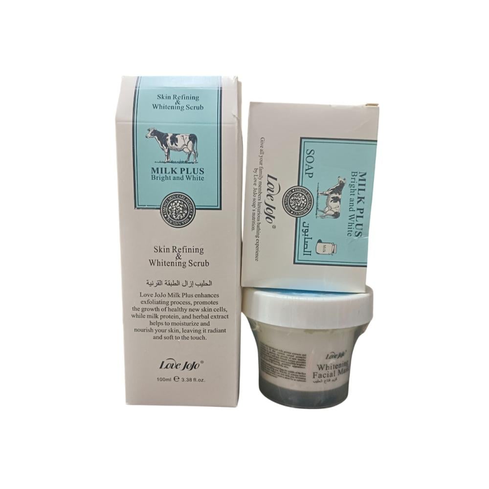 - المكونات الرئيسية: خلاصة الحليب ومكونات مقشرة