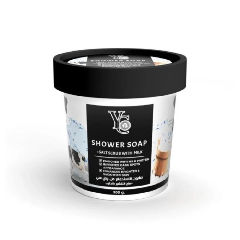- صابون الاستحمام مع ملح التقشير بالحليب واي سي 300 جرام.