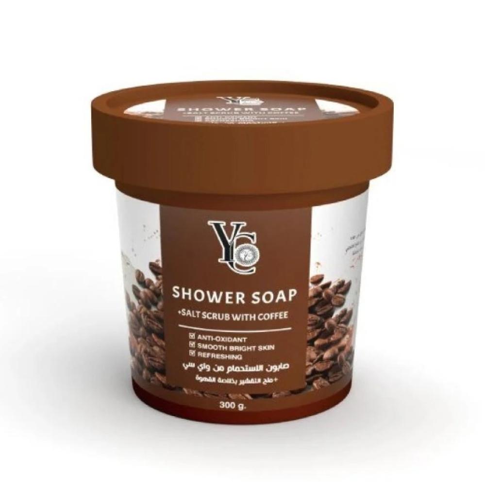 - صابون الاستحمام مع ملح التقشير بالقهوة واي سي 300 جرام.