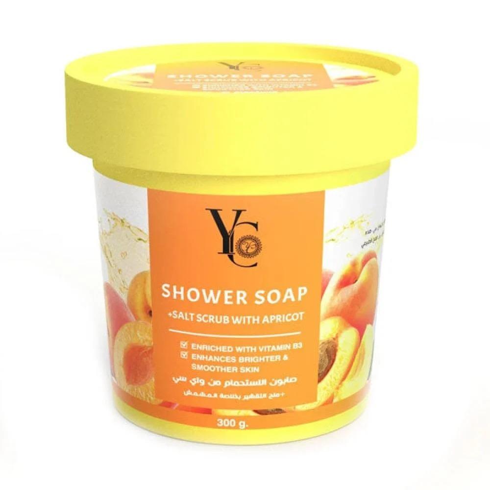 - صابون الاستحمام مع ملح التقشير بالمشمش واي سي 300 جرام.