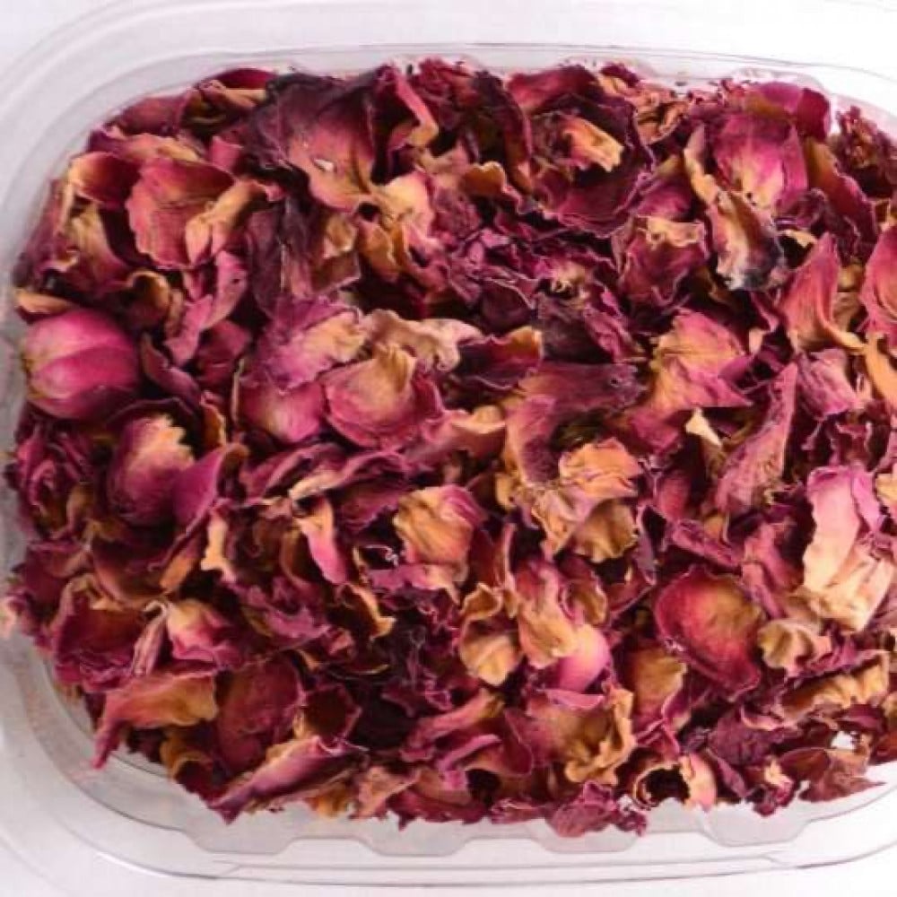 - المكونات: بتلات ورد الزهور الأحمر المجففة بنسبة 100%.